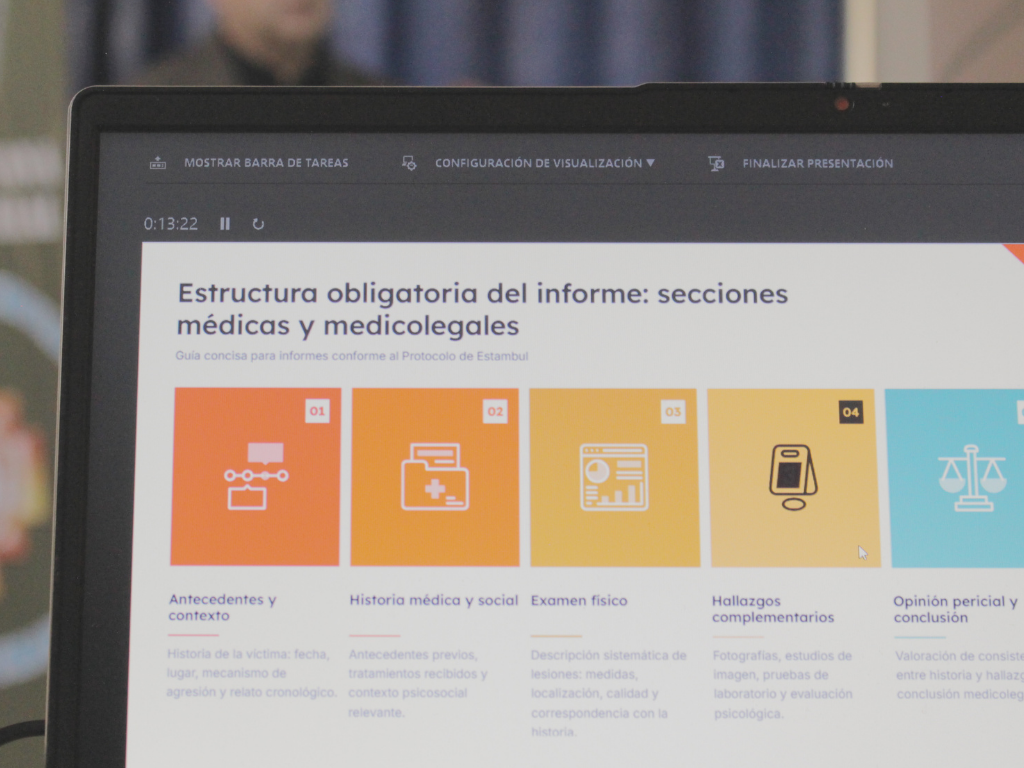 Durante la sesión se explicó el origen de estos instrumentos internacionales, su enfoque basado en el método científico, su importancia para la investigación exhaustiva, imparcial y transparente de los casos de tortura y el contenido que debe seguir los enfoques médico legales.