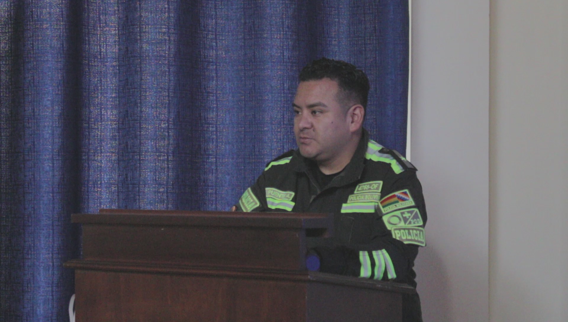 El My. Israel Marco Puente Aldana, responsable de capacitación de la Dirección Nacional de Derechos Humanos de la Policía Boliviana instó a sus colegas a socializar los conocimientos adquiridos en sus respectivas unidades y subrayó la importancia de que los miembros de la institución cuenten con formación en derechos humanos y en el marco normativo que respalda sus procedimientos.